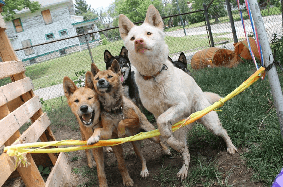 At the same time, it's very important to build a bond with your dog! Many of the things mentioned above are very bonding. Working for you builds attachment. Walks with his "pack", games, petting and grooming, two-way communication, feeding rituals, and sharing new experiences are all very team-building. I like to put extra effort into mental enrichment, with primitive breeds, because they are so intelligent and seek novelty. We play lots of games, especially prey games, to keep their minds fulfilled. ANYTHING can be a puzzle, or a game! Cheap toys from the thrift store, or empty boxes or bottles, can easily be repurposed for the day's Game. some of our games...